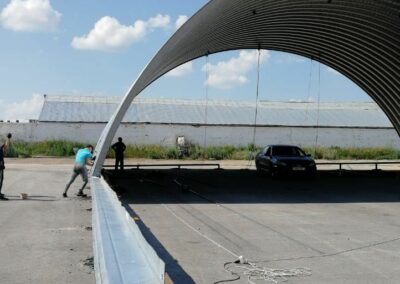 خلال عملية التركيب، نستخدم تقنيات متقدمة لضمان جودة العمل وسرعة الإنجاز. نحن نلتزم بأعلى معايير الأمان والدقة، مما يضمن أن تكون هناجرك مثبتة بشكل آمن وتتحمل الظروف الجوية المختلفة.